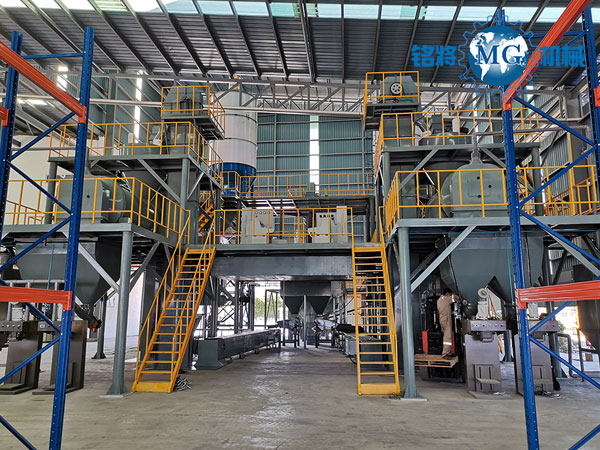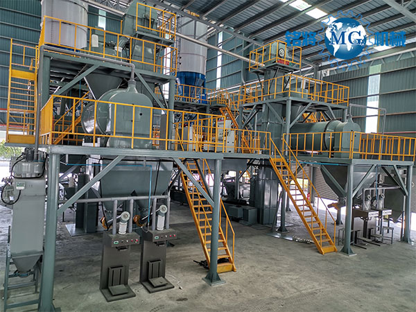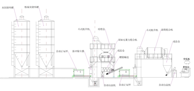 該套生產(chǎn)線在全自動干粉砂漿生產(chǎn)線的基礎(chǔ)上,增配針對玻化微珠物理特性專門研制的離心式滾筒混合機(jī)及高效專用體積打包機(jī)(敞口包裝機(jī)可選)。該套生產(chǎn)線效率高、產(chǎn)量大、適用性強(qiáng)、操作性好。該套設(shè)備實現(xiàn)多點除塵處理,工作環(huán)境好,有力保障員工身心健康,創(chuàng)造高效清潔的生產(chǎn)環(huán)境。