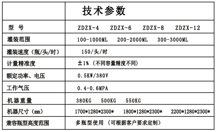 | 灌裝精度 | ±0.5% | ±0.5% | ±0.5% | ±0.5% | ±0.5% |